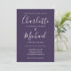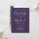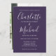 Apresentando nomes de estilo de assinatura, este elegante convite de casamento pode ser personalizado com suas informações em letras brancas chic em um fundo roxo com sua foto escolhida no verso. Você pode personalizar a cor de fundo para corresponder ao seu tema de casamento. Projetado por Thisnotme©