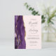 A borda esquerda deste elegante convite de casamento moderno apresenta uma cor d'água roxa, borda agitada, aparada com falso brilho dourado. O texto personalizável combina a escrita manual de cinzas de carvão, fontes em copperplate e itálico em um fundo cor-de-rosa pincelado. Substitua facilmente a imagem de exemplo no verso por sua própria foto vertical e adicione uma breve mensagem com informações adicionais, como o URL do site de casamento.