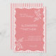 Celebre seu dia especial com este convite de casamento moderno, com uma fronteira ondulada desenhada à mão e bordas balançadas à mão. O design lúdico é aprimorado com elementos botânicos delicados e listras retrô-estilo, enquadradas em um layout de escala de cor rosa-na moda. Este convite combina elegância moderna com charme vintage — perfeito para casais que buscam algo único, mas eterno. Todo o texto é totalmente personalizável, permitindo que você altere fontes, cores e detalhes do casamento para se adequar ao seu estilo pessoal. Disponível em várias variações de cor para corresponder perfeitamente ao seu tema.