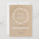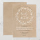 Este convite de casamento rústico e chico apresenta uma coroa floral branca que destaca o nome da noiva e do noivo num fundo de papel de estilo kraft. Entre em contato comigo para obter qualquer pedido personalizado ou ajuda.
