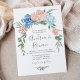 Convite romântico de casamento, com uma plantação floral de blues e pinks empoeirados.