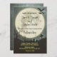 Convite de casamento de Halloween com lua, cemitério, e morcegos sobre um céu negro escuro. Celebre o seu Hallowedding em estilo com este belo convite de Halloween, mas elegante!
