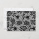 Um padrão de damasco de aranha sobre um fundo de linho cinza ilustrado decora este convite de casamento de Halloween, dando-lhe uma aparência texturizada. É mostrado no papel básico; no entanto, eu recomendo o peso e a textura do papel de linho, para melhorar a aparência.
