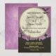 Convite de casamento de Halloween em roxo com lua, cemitério e morcegos sobre um céu noturno roxo. Celebre o seu Hallowedding em estilo com este belo convite de Halloween, mas elegante!