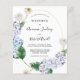 O design floral moderno apresenta hidrangas azuis empoeiradas e rosas brancas de marfim decorando uma estrutura de ouro oval. A tipografia moderna acrescenta à vibração Boho. Este item faz parte da Coleção de Hipotecas Azuis Modernas.