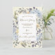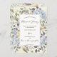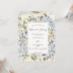 Um belo convite de casamento floral azul-aquarela, colocado sobre um fundo de marfim e um padrão foliar coordenado para o dorso. Fácil de editar ou excluir os campos/fontes de texto para atender às suas necessidades pessoais. Um design clássico e elegante. Muitos itens correspondentes nesta coleção. Por favor, visite meu compro para ver a faixa de cheios.