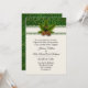 Lindo convite de casamento de inverno feito em marfim com gráficos de um padrão de redemoinho dourado e verde ao longo da borda superior, com uma fita de marfim e um raminho de pinheiro com pinhas. Personalize todos os campos de texto para o seu casamento de feriado / inverno especial. Produtos correspondentes estão disponíveis.