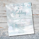 Um convite de casamento de inverno elegante e econômico com tipografia elegante e flocos de neve delicados caindo sobre seus nomes personalizados, data especial e detalhes do evento de celebração de casamento em um fundo de geada de inverno. Projetado por Thisisnotme©