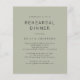 Simples Convite de casamento de Janto de ensaio verde de Sage mole. Um alternativo de 4,5 pol x 5,6 pol com preço inferior. Disponível em um STOCK DE CARTÃO SEMI-GLOSS 110 lb, que é a opção padrão (mais espesso para convites), OU um STOCK de PAPEL THINNER FINISH 80 lb FINISH (ideal para gabinetes). Os envelopes são um extra opcional e são ligeiramente maiores que o tamanho da placa. Fácil de personalizar com suas palavras. Você também pode alterar as cores do texto e do plano de fundo em ambos os lados, se desejar através da opção Personalizar mais.