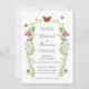 Convite de casamento elegante com tema de jardim botânico pintado à mão em aquarela, apresentando belas flores silvestres, folhagens, abelhas e borboletas. Personalize clicando nas caixas "Editar este modelo de design" no lado direito do item, ou clique no botão azul "Personalizar" para organizar o texto, alterar as fontes e cores