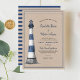 Um design rústico com um tipo de farol desenhado à mão num tema de cor azul e branca. A textura de fundo da kraft clara é uma imagem que não é apenas papel. A parte de trás tem listras. O texto está em azul e preto com script de pincel, cores e fontes são personalizáveis.