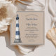 Um design rústico com um tipo de farol desenhado à mão num tema de cor azul e branca. A textura de fundo da kraft clara é uma imagem que não é apenas papel. A parte de trás tem listras. O texto está em azul e preto com script de pincel, cores e fontes são personalizáveis.
