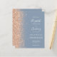 A borda esquerda deste elegante convite de casamento moderno apresenta uma borda falsa de pêssego. O texto personalizável combina manuscrito branco, fontes em copperplate e itálico em um fundo azul empoeirado. O lado inverso apresenta um brilho de pêssego correspondente e um design azul empoeirado.