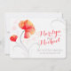 Linda e estilizada flor de aquarela em convite floral de laranja, amarelo, vermelho e cinza. Edite este convite com suas próprias palavras. Design único e pintura em forma de água estilizada por Sarah Trett para www.mylittleedenweddings.com