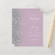 A borda esquerda deste elegante convite de casamento moderno apresenta uma borda falsa de prata. O texto personalizável combina manuscrito branco, fontes em copperplate e itálico em um fundo roxo empoeirado. O verso apresenta um roxo empoeirado e design prateado correspondentes.
