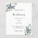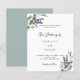Um fundo branco na moda na frente. Decorado com eucalipto e lavandas florais. Personalize e adicione seus nomes e detalhes. Fundo: fundo colorido de cinza verde.