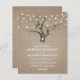 Convites de casamento de floresta orçada com fundo de burlap, rústico, tronco de árvore de aquarela, coração esculpido com suas iniciais, luzes de cintura e um elegante modelo de casamento.