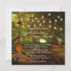 Convite de casamento com um conto de fadas encantado como a floresta com luzes de cordas, um balanço, flores e animais bonitos. Se você gosta mais do lado de trás, pode copiar e colar a imagem na frente, ou vice-versa. Este convite tem uma placa RSVP correspondente.
