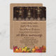 Design de cartão único com lindas rendas beges, burlap, madeiras velhas, velhas lanternas e folhas coloridas de queda. Use a ferramenta Personalizar para adicionar suas informações. Veja, também, minha coleção de casamentos de Lanternas Velhas e Queda.