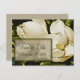 Este design pode ser encontrado em vários itens de casamento, incluindo convites, selos, cartões de RSVP e cartões de salvar a data. A imagem de fundo é Magnólias Gigantes em um Tecido de Veludo Azul (detalhe); Martin Johnson Heade; c. 1890.