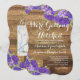 Rustic Country Western Getting Hitch Barn Wood Invitation Modelo com flores de hydrangea roxas e outras flores roxas em cantos opostos, e um mapa para direções no verso.