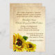 Um convite de casamento de reprodução muito antiga, com gráficos de papel velho e bonito girassóis, no canto inferior esquerdo.O texto verde- escuro e marrom está pronto para personalizar o seu casamento. Belo convite para Primavera, Verão ou Casamento outono.