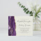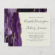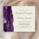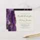 A borda esquerda deste elegante convite de casamento moderno apresenta uma cor d'água roxa, borda agitada, aparada com falso brilho dourado. O texto personalizável combina a escrita manual de cinzas de carvão, as fontes em copperplate e itálico em um fundo de marfim. O verso apresenta um design de agate roxo e dourado correspondente.
