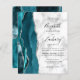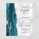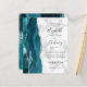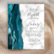 A borda esquerda deste elegante convite de casamento moderno apresenta uma cor azul-lacrimejante agata borda com falso brilho prateado. O texto personalizável combina manuscrito preto, fontes em copperplate e itálico em uma cinza e fundo de mármore branco. O verso apresenta um design de barro e de agata prateado correspondentes.