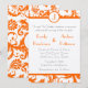 Coral e Cinza do Elegante Laranja Damasco Vitoriano Monograma Casamento Convites Laranja Casamento Coral Convites e Cartões de Resposta