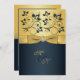 Este monograma de casamento floral com ouro e marinho azul tem uma fita magnética em ouro e arco com uma pedra magnética e joias de diamante nela. O texto é personalizável. O tipo de papel também é personalizável. Se você precisar de outros itens neste design, envie um e-mail para mim com sua solicitação em niteowlstudio@gmail.com