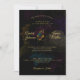Convite De Casamento De Monograma Floral Escuro. Parte da Coleção de Convites para Casamento Amber. Florais Moody e monogramas. Texto colorido Dourado é totalmente personalizável. Flores Iluminadas. Fundo preto escuro com flores desbotadas.
