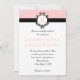 Etiqueta de Vintage Chic, rosa, preto e branco, com um convite de casamento para um monograma moderno. Convites de casamento lindos e versáteis que você pode mudar a cor de fundo para se adequar às suas cores de casamento.Arte e design por Elke Clarke ©2010. Personalize com seus nomes, monograma, data de casamento e seu convite de convite para este convite de casamento. Você também pode mudar a cor do plano de fundo e não se esqueça de tentar diferentes opções de papel, cada uma adicionando sua própria "aparência" além do design. As placas RSVP correspondentes com envelopes são mostradas abaixo.