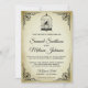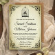 Incêndio aos seus convidados com este convite de casamento ao estilo vintage com uma elegante fronteira de ornamentado preto e uma bela gaiola de pássaros negros contra um fundo de pergaminho rústico. Basta adicionar os detalhes do seu evento neste modelo fácil de usar para torná-lo um convite de tipo único.
