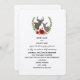 Um convite para o casamento de Natal, com uma ilustração de flores vermelhas, arranjadas em torno dos pincéis de um pinto e de um pinto. Personalize o texto com detalhes da sua ocasião. A redação é da noiva e do noivo junto com suas famílias.