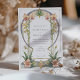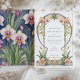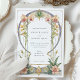 Este luxuoso convite de casamento captura a essência de Art Nouveau com seu intrincado design floral, com um espetacular arco enfeitado com orquídeas elegantes. A frente do convite mostra orquídeas lindamente detalhadas em tons quentes de pêssego, lavanda e rosa-pincel, todas colocadas sobre um fundo branco clássico. O convite é formado por linhas fluidas, orgânicas e um rico motivo botânico que expele sofisticação e graça. O verso do convite continua o tema floral com um vibrante jardim de orquídeas em um fundo azul profundo, de meia-noite, criando um contraste impressionante que é simultaneamente eterno e moderno. Perfeito para casais que buscam um convite refinado e elegante que fale de amor à natureza e design clássico.