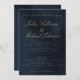 Meia-Noite Marinho Azul Velvet Olhe A Caligrafia Roteiro Cartões De Convites De Casamento. Moody, romântico e moderno. A textura azul parece veludo. Dourada cor - Script de caligrafia. A linha superior é uma imagem de caligrafia personalizada e não editável, mas pode ser excluída e substituída pelo texto. Parte do Concurso de Casamento Julia. NOTA: se azul não for a cor do tema do casamento, você poderá excluir a imagem de fundo azul e alterá-la para qualquer cor de fundo.