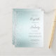 Este elegante convite de casamento moderno mostra o confete de falso prata em um fundo aqua ombre. O texto personalizável combina a escrita manual de cinzas, a cópia e as fontes itálicas. O reverso apresenta um confete prateado correspondente e um design aqua ombre.