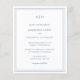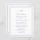O estilo clássico azul empoeirado tudo em um convite de casamento orçamentário com um design simples e mínimo com seu monograma no topo e seus detalhes de evento cercados por uma dupla borda. As fontes se alternam entre um script elegante, um serif tradicional e fontes sans serif minimalistas. A parte traseira tem seus detalhes de convidado junto com um Código QR opcional (se preferir, você pode remover o Código QR na ferramenta de edição de design). Este convite é excelente para um casamento formal.