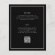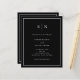 Estes elegantes, modernos e orçamentários convites para casamento são impressos em uma folha de papel. Eles apresentam um simples design de texto minimalista branco sobre um fundo preto escuro, com uma estrutura clássica na borda. Adicione suas iniciais ou monograma para torná-las completamente suas. A parte de trás do convite tem espaço para adicionar qualquer detalhe de convidado, além de um código de QR digitalizável para que os convidados possam RSVP on-line no seu site de casamento.