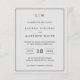 Simples convite de casamento orçamentário com um design moderno, mas elegante, com seu monograma de duas letras no topo, um layout ousado de data e seus detalhes cercados por uma borda fina. Todos os elementos de design estão em preto sobre um fundo de cinza claro e podem ser alterados na ferramenta de edição design. Um design chic e na moda que é excelente para um casal minimalista.