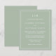 Simples convite de casamento orçamentário com um design moderno, mas elegante, com seu monograma de duas letras no topo e seus detalhes cercados por uma fronteira fina. Todo o texto está em branco sobre um fundo verde sábio. As fontes e as cores de fundo podem ser alteradas para qualquer cor desejada clicando no botão "personalizar". Estes convites baratos de casamento são excelente de um casal minimalista.