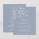 Um convite de casamento para a Elegante Arte de Linha com um simples desenho de lápis de uma flor de magnólia em branco sobre um fundo azul empoeirado. Este adorável convite floral é excelente para um casamento de primavera ou verão.