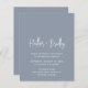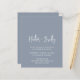 Convite para casamento de orçamento moderno com um simples design com seus nomes em uma tipografia de script elegante e seus detalhes de evento em uma fonte minimalista sans serif. Todos os elementos design estão em branco sobre um fundo azul empoeirado. Este convite de casamento chic funciona bem para um primavera, verão ou casamento no inverno.