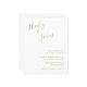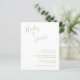 Convite para casamento de orçamento moderno com um design simples com seus nomes em um roteiro manuscrito elegante no canto superior esquerdo e seus detalhes de evento no alinhamento direito no canto inferior direito. Todos os elementos de design estão em dourado falso e podem ser alterados na ferramenta de edição de design. A letra chic da mão acrescenta um toque romântico a esta design minimalista.