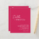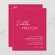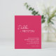 O orçamento cor-de-rosa moderno Viva Magenta, tudo em um convite de casamento, com um design simples e mínimo com o nome da noiva em um roteiro elegante e o nome do noivo em uma fonte sans serif contemporânea. Abaixo, no canto inferior direito, estão os detalhes do evento em um layout minimalista. A parte traseira tem seus detalhes adicionais e o Código QR, para que você possa ignorar a placa do compartimento e a placa RSVP.
