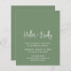 Convite para casamento de orçamento moderno com um simples design com seus nomes em uma tipografia de script elegante e seus detalhes de evento em uma fonte minimalista sans serif. Todos os elementos de design estão em branco sobre um fundo verde de sábio profundo. Este convite de casamento chic funciona bem para um verão ou um casamento de outono/outono.