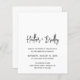 Convite para casamento de orçamento moderno com um simples design com seus nomes em uma tipografia de script elegante e seus detalhes de evento em uma fonte minimalista sans serif. Todo o texto está em preto-e-branco. Este convite de casamento chic funciona bem com qualquer estilo de casamento.