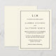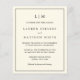 Simples convite de casamento orçamentário com um design moderno, mas elegante, com seu monograma de duas letras no topo e seus detalhes cercados por uma fronteira fina. Todo o texto está preto sobre o fundo do creme de marfim. As fontes e as cores de fundo podem ser alteradas para qualquer cor desejada clicando no botão "personalizar". Estes convites baratos de casamento são excelente de um casal minimalista.