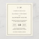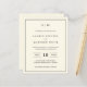 Simples convite de casamento orçamentário com um design moderno, mas elegante, com seu monograma de duas letras no topo, um layout ousado de data e seus detalhes cercados por uma borda fina. Todos os elementos de design estão em preto sobre um fundo creme/marfim e podem ser alterados na ferramenta de edição de design. Um design chic e na moda que é excelente para um casal minimalista.