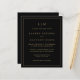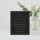 Simples convite de casamento orçamentário com um design moderno, mas elegante, com seu monograma de duas letras no topo e seus detalhes cercados por uma fronteira fina. Todo o texto está em ouro sobre fundo preto. As fontes e as cores de fundo podem ser alteradas para qualquer cor desejada clicando no botão "personalizar". Estes convites baratos de casamento são excelente de um casal minimalista.